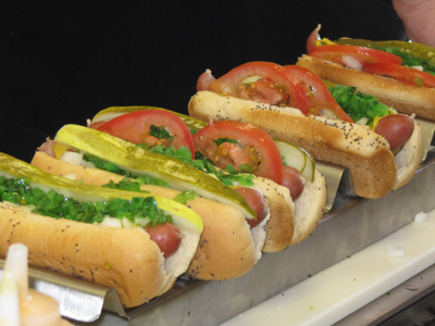 Do you love Hot Dogs? If you answered "Yes", you have come to the right place. A good Hot Dog can be a thing of beauty and a stupendous culinary experience, but the Chicago Style Hot Dog has been described as the quintessential Hot Dog. Start with a Vienna Beef hot dog, nestle it in a steamed poppyseed bun and cover it with a wonderful combination of toppings: yellow mustard, bright green relish, fresh chopped onions, juicy red tomato wedges, a kosher-style pickle spear, a couple of spicy sport peppers and finally, a dash of celery salt.